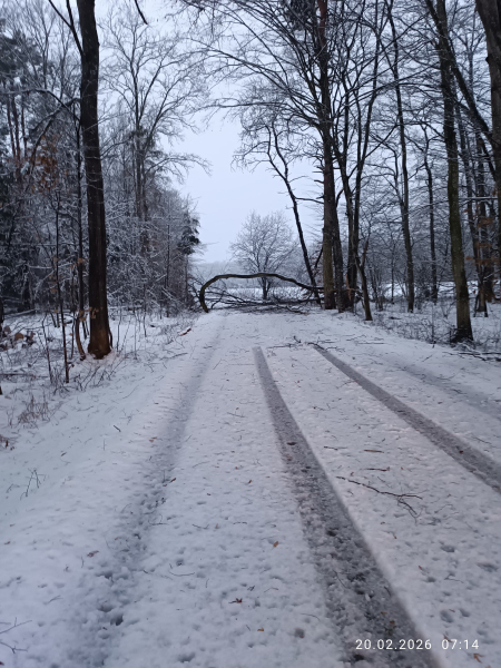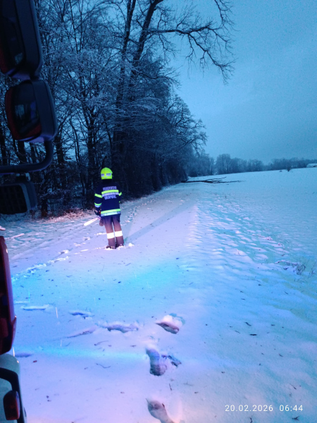 Aufgrund der starken Schneefälle und des nassen, schweren Schnees in der vergangenen Nacht kam es bei mehreren Bäumen zu Schneebruch. Diese stürzten auf die Straße, die anschließend von den Kameraden geräumt wurde.