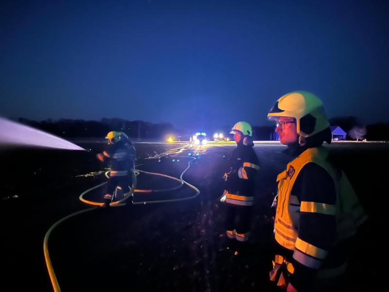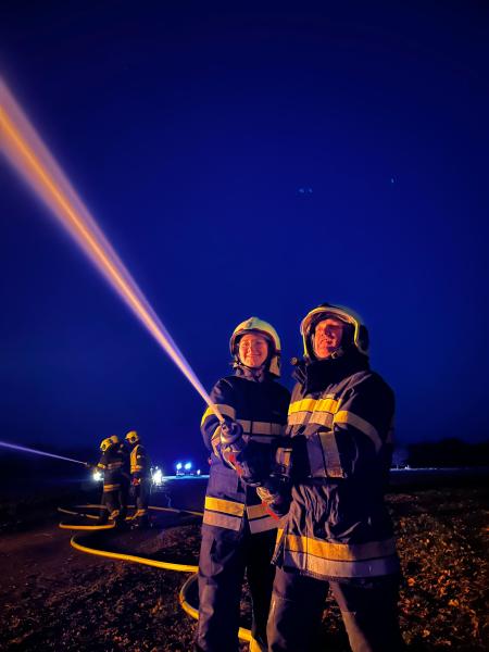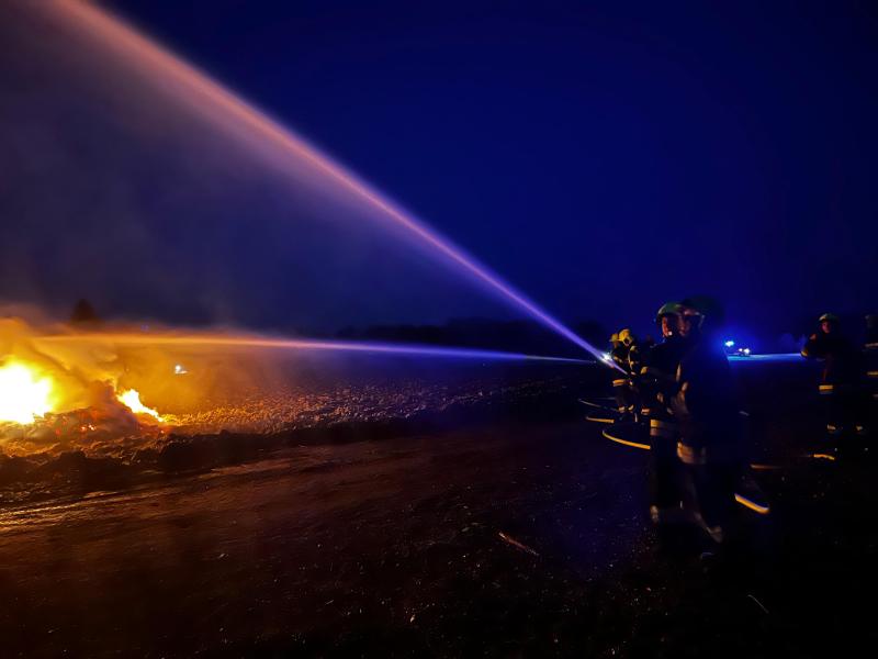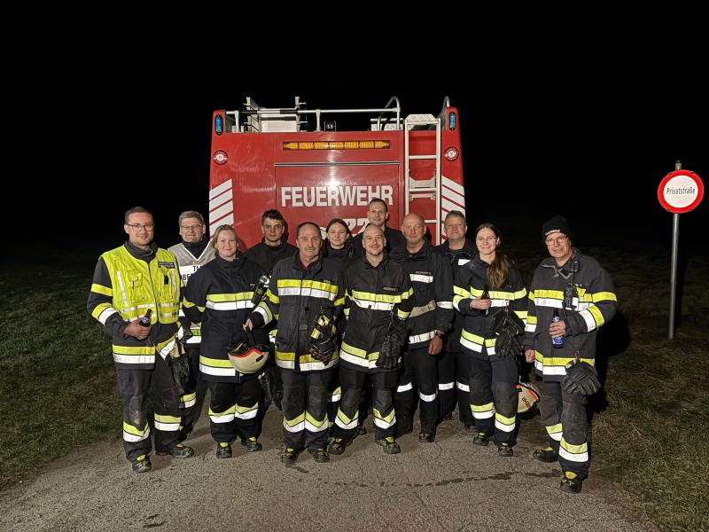 Nach dem Aufbau der Wasserversorgung wurde ein Löschangriff durchgeführt, um das angenommene Feuer zu bekämpfen und eine weitere Ausbreitung zu verhindern. Die Übung diente dazu, die Abläufe zu festigen und die Zusammenarbeit zu stärken.
